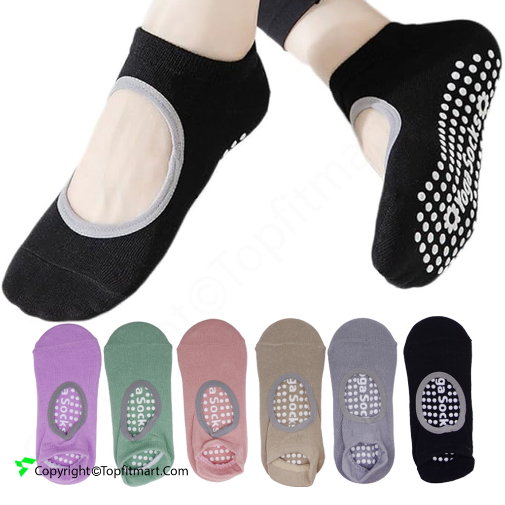 جوراب یوگا یک وسیله محافظتی و پوششی بوده که در ورزشهای یوگا، پیلاتس و ایروبیک کاربرد دارد. این جوراب به دلیل دارا بودن برجستگیهای با خاصیت ضد لغزش مانع از سر خوردن در هنگام انجام حرکات کششی شده و از طرفی از آسیب به کف پا نیز جلوگیری میکند. جورابهای یوگا در طرحهای مختلفی از جمله پنجه باز، پنجه دار، جلوبسته جورابی، و بدون پاشنه تولید شده و معمولاً دارای بندهای کشی ضربدری روی سینه پا یا بدون کش و ساقدار هستند.